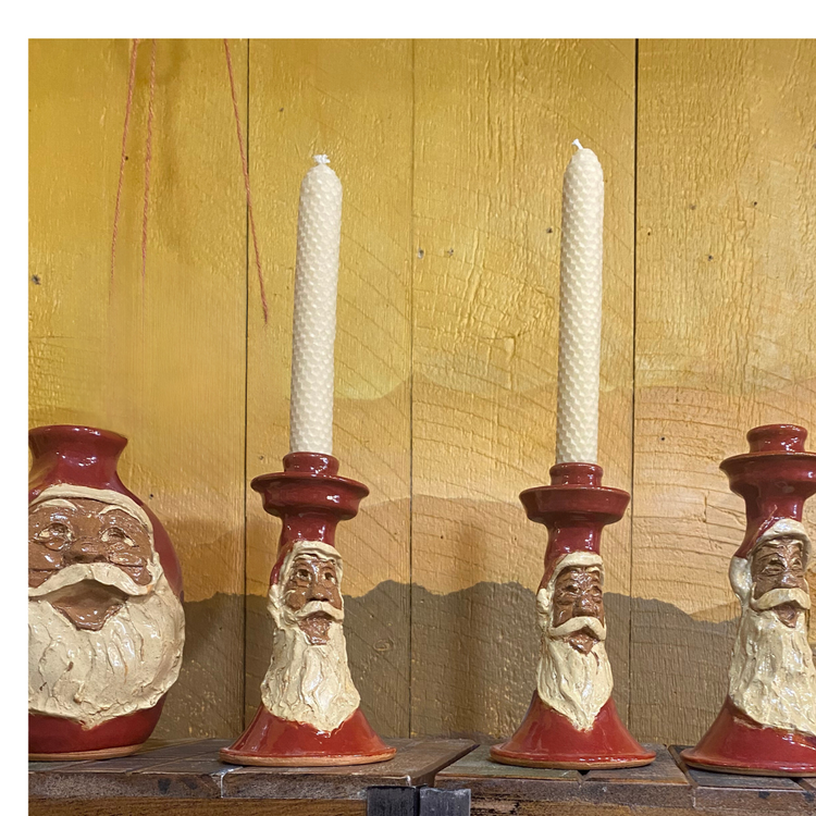 Pottery Santa Claus hand sculpted candlestick for taper candle