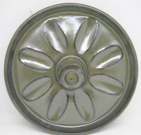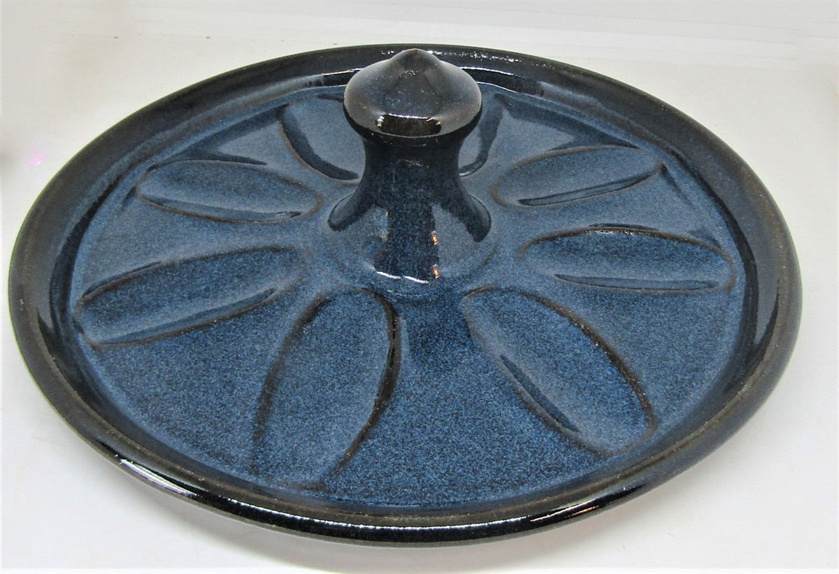 Created by Janet Bolick Calhoun of Traditions Pottery, this Deviled Egg dish holds 8 deviled eggs and is oven, microwave, and dishwasher safe. measures 2" tall x 7" across. If in stock, it will ship within 3 days; if not, please allow for 2-3 weeks of production time.