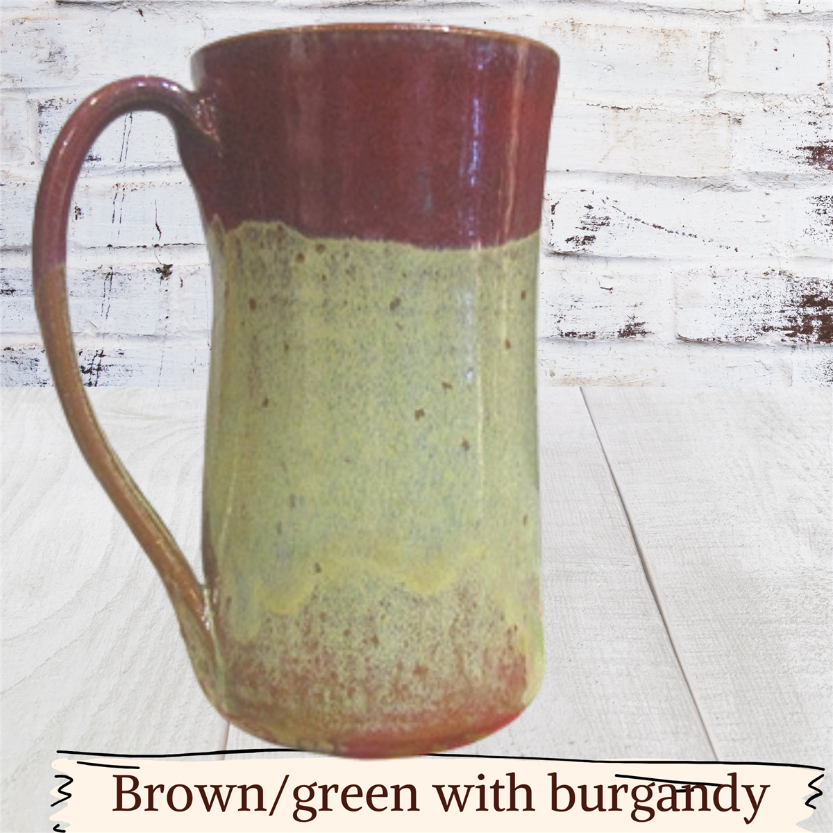 Features: Our largest mug. Nice long and wide handle for all 4 fingers. Great tankard, or beer mug