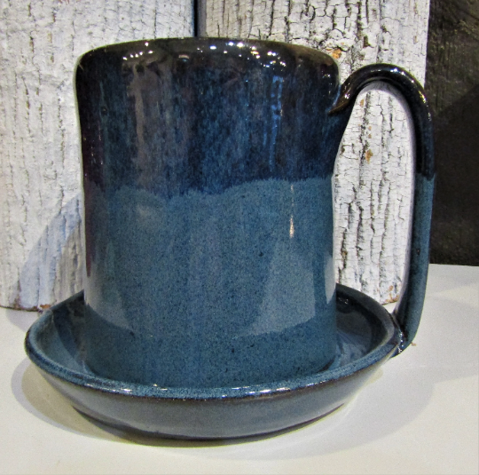 It may also be used in the oven, and dishwasher. Approximately 5" tall and 5" across the top.